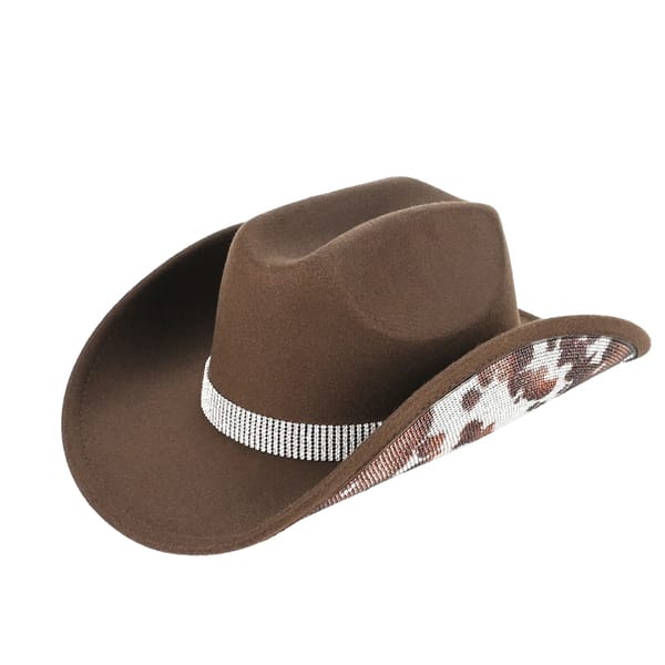 CC VCC-0083 – Cow Pattern Rhinestone Vegan Felt Cowboy Hat quantity